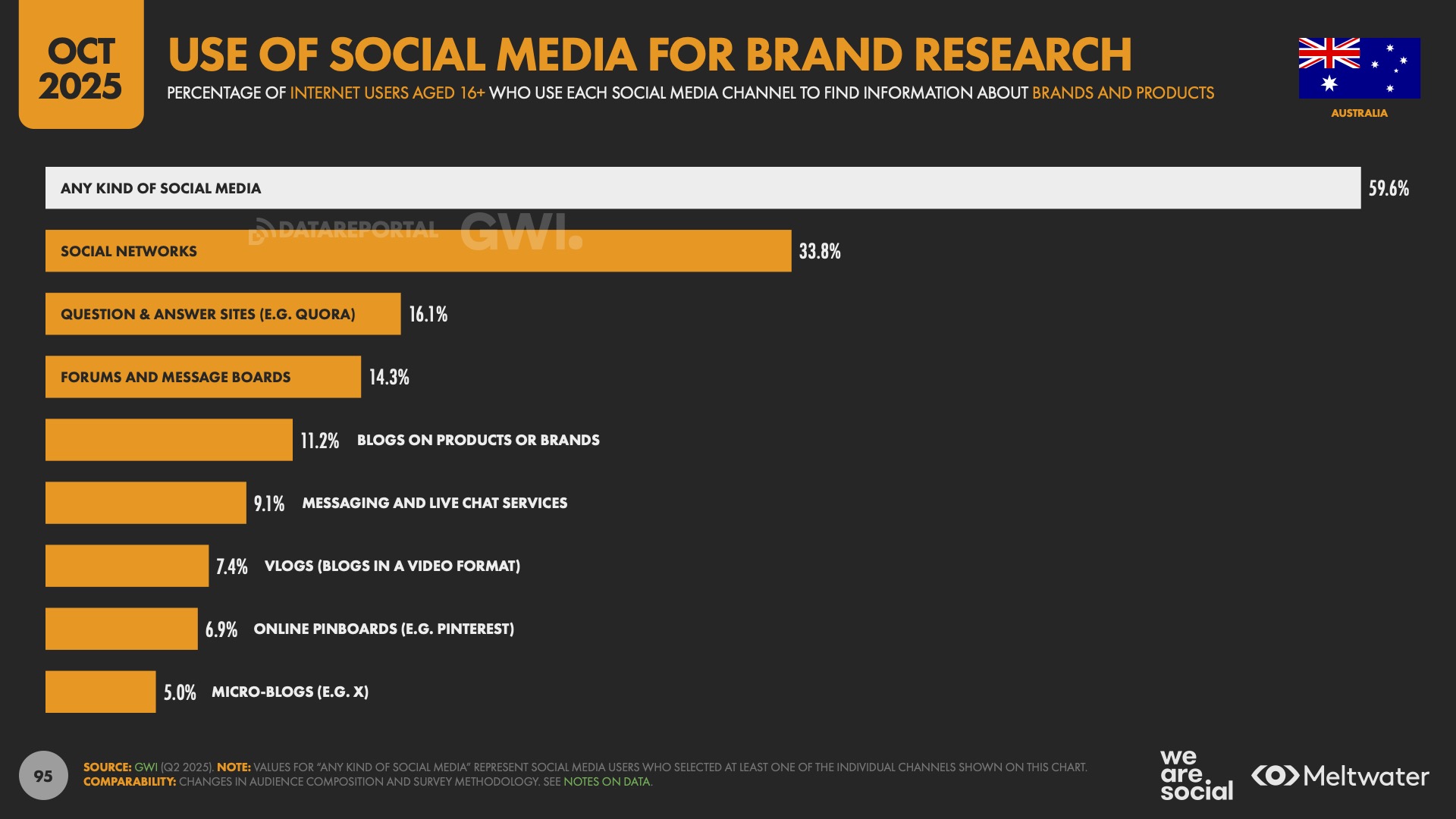 Six in ten Australians use social media (including forums, community boards, and Q&A platforms) to research brands. That’s almost equal to the proportion using search engines. Proof that people aren’t just watching videos or scrolling feeds: they’re actively evaluating brands in these spaces. That means your content, your community presence, and even your replies are shaping brand perception.
