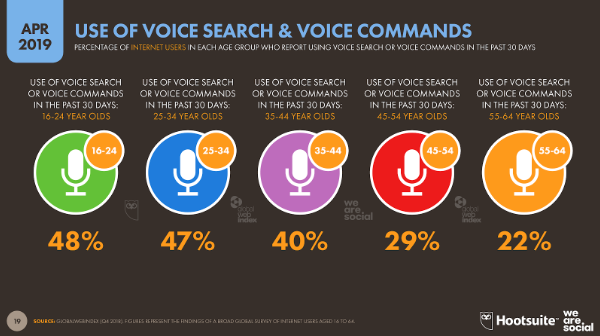 This is particularly true of younger users, many of whom have not yet developed ‘fixed’ habits when it comes to using digital devices and services. Indeed, the latest data from GlobalWebIndex shows that almost half of all internet users aged 16 to 24 already use voice, compared to less than 30 per cent of users aged 45 and above.