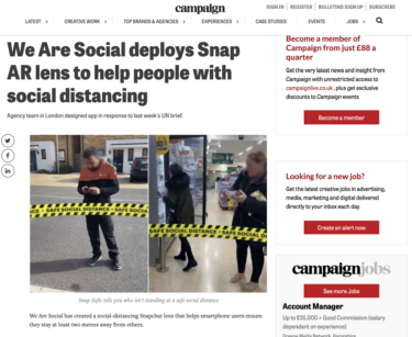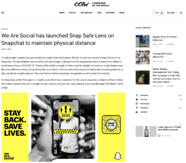 We noticed that a number of people were either flouting that advice or taking extreme measures to protect themselves so we wanted to do something about it. We focused on Snapchat’s audience of largely millennials and Gen Z, to educate their reach of 218 million people every day on how to practice safe social distancing in real-time.