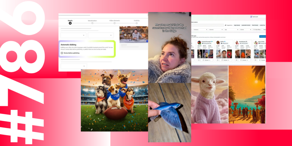 Cette semaine, Meta renouvelle sa plateforme Creator Marketplace, YouTube étend son outil de doublage automatique et X propose à nouveau 1 million de dollars à un heureux gagnant.