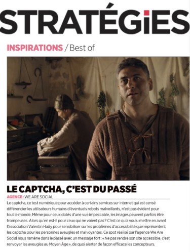 Pour célébrer la Journée mondiale de la sensibilisation à l’accessibilité (GAAD) ce jeudi 19 mai 2022, l’association Valentin Haüy et l’agence We Are Social imaginent une vidéo décalée et percutante avec un objectif clair : sensibiliser sur les problèmes d’accessibilité que représentent les CAPTCHA, qui renvoient littéralement les personnes aveugles et malvoyantes au Moyen-Âge…