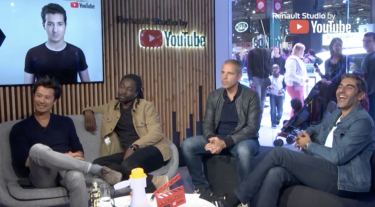 – La marque a initié une collaboration inédite avec Google : le Renault Studio by YouTube, un Studio implanté sur le stand pour créer un RDV quotidien sur la chaîne YouTube Renault, toucher de nouvelles communautés via 8 YouTubeurs qui ont investi le Studio pour interviewer les célébrités présentes sur le salon, et produire des vlogs autour de l’actualité du stand.