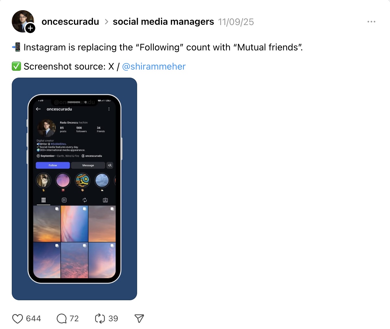 Instagram tests Friend count rather than Following