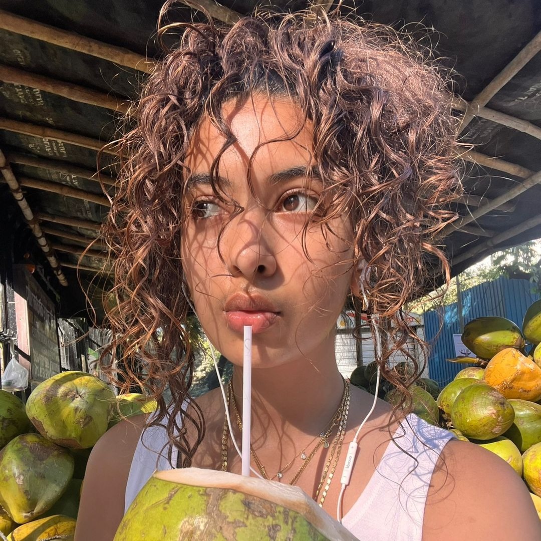 Diya is reinventing the cool girl trope with a level of nonchalance that simply can’t be taught. She’s a fashion designer who was dubbed the “cool girl from India.” Her content is a fever dream. One minute she’s striking a pose on an excavator, the next she’s skating away with a coconut, petting cows on the street, or hopping on a horse, and no, this isn’t an exaggeration.