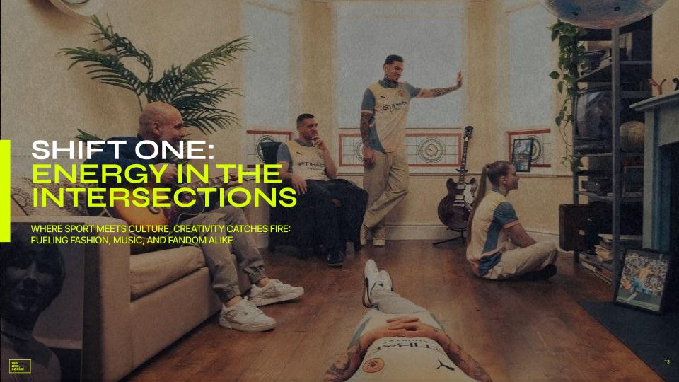Sport is becoming a shared global resource for infinite cultural remixing, and the outputs spread like wildfire on social media. Deep subcultures and niches are fuelling cultural products of their own in fashion, music and art by creating crossover moments and movements between sport and culture.