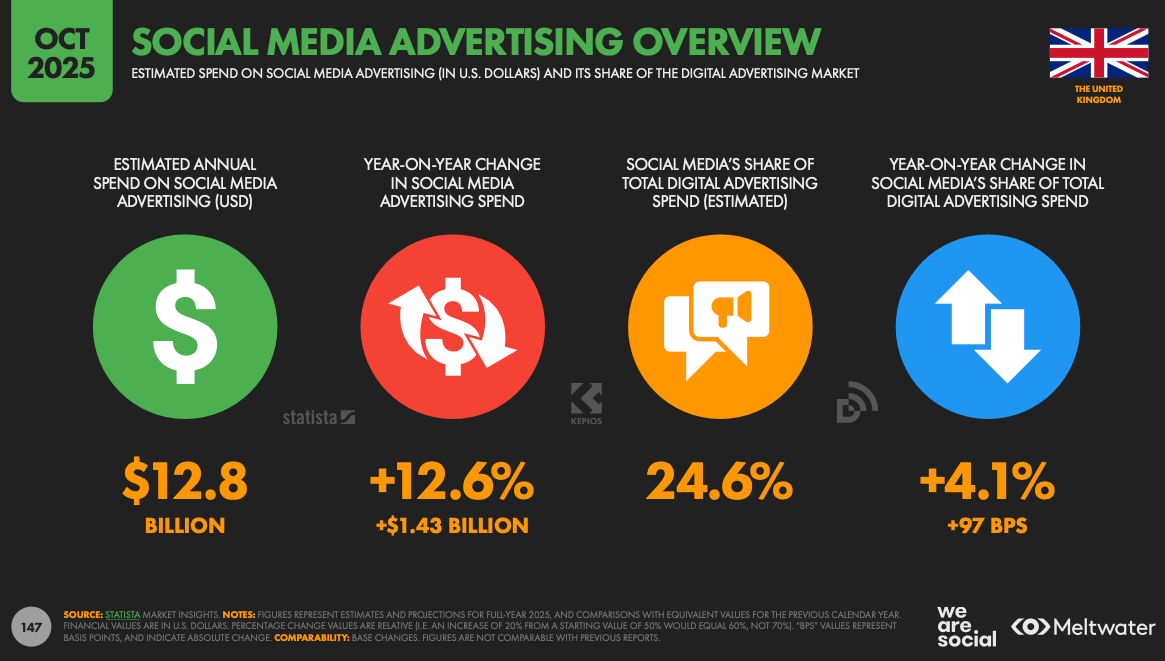 Lucy Doubleday, our UK Managing Director, commented: “Social media continues to shape the way people in the UK connect, discover brands, and make purchasing decisions. It’s encouraging to see social ad spend climbing, but success on social isn’t just about having deep pockets, it’s about cultural relevance. With platforms like Reddit making gains, brands need to have an even deeper understanding of how to operate in the complex social media ecosystem; understanding the nuances results in creative opportunities that make an outsized impact. The smartest brands see social as a strategic heartbeat, not a tick box.”