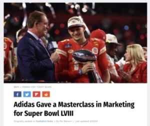 In Vegas, with limited access to Mahomes, we went all in – achieving in just one month what would typically demand six. Using proprietary tech and a body double trained by Mahomes’ coach, we created a computer-generated visual representation of Mahomes, perfecting his every movement. Amplified by a social strategy that not only took the internet by storm, but also led Sports Illustrated to declare that Adidas upset Nike in winning the Super Bowl, solidifying our dominance in the week’s headlines.