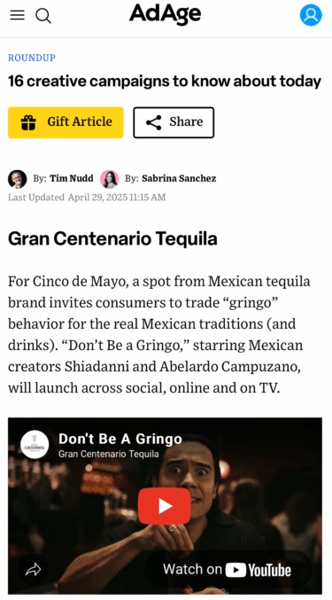 At the heart of the campaign is a comedic, culturally-savvy film that calls out “Gringo” behavior–not to shame it, but to invite Americans to do better, starting with their tequila choice. The message is simple: Don’t drink Gringo tequila. Drink the tequila Mexico actually loves.